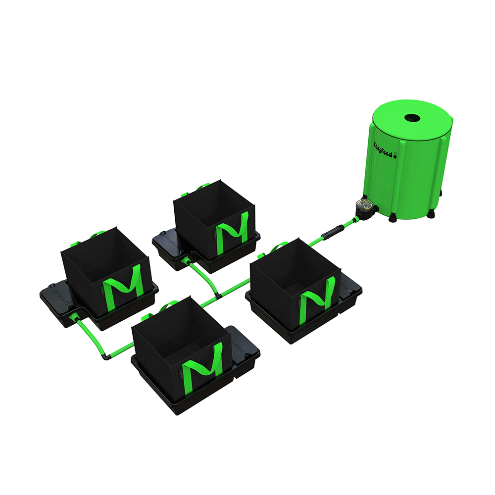 Product InformationThe Low-Maintenance System that Offers Precision Feeding Schedules and Faster Growth Rates, Leaving the Competition Standing!The EasyFeed represents a huge evolution in gravity-fed systems – the designers have listened carefully to customer feedback to create the ultimate low-maintenance irrigation solution. It schedules the frequency and duration of feeds using a battery powered timer, putting the grower back in the driving seat (unlike comparable systems). EasyFeeds feature 13mm (internal diameter) pipework that’s thicker than the competition, which slashes the odds of ever encountering blockages, reducing maintenance work. Not only that, EasyFeed systems come with high-quality fabric pots which increase oxygen levels while creating a root-pruning effect, accelerating growth rates and maximising yields.