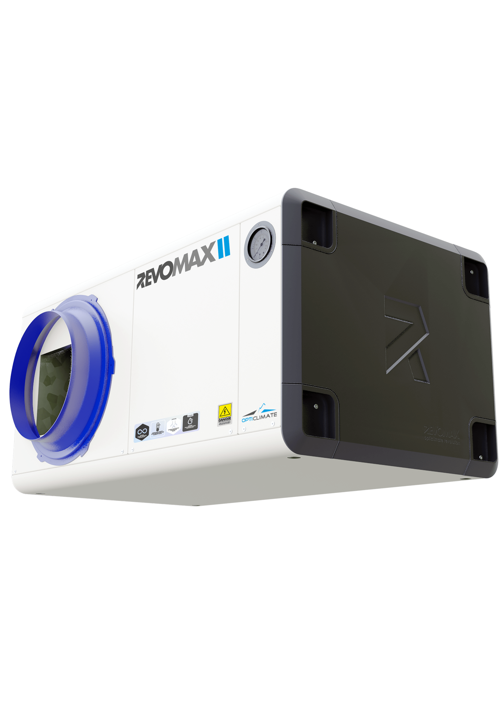 Moisture is everywhere in the air and can have a negative effect on your health and your crops. High humidity can be very damaging and can cause mold, rot, rust, and a musty odor. Too much humidity can lead to dust mites and allergens. It is therefore essential for an optimal indoor climate control to manage humidity. The RevomaxII helps you to create the ideal environment under the most extreme circumstances.